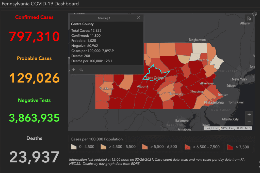 Centre County reported 33 new COVID-19 cases on Thursday to bring its total to 12,786, according to the Pennsylvania Department of Health. Pennsylvania added 2,356 cases, bringing its total to […]