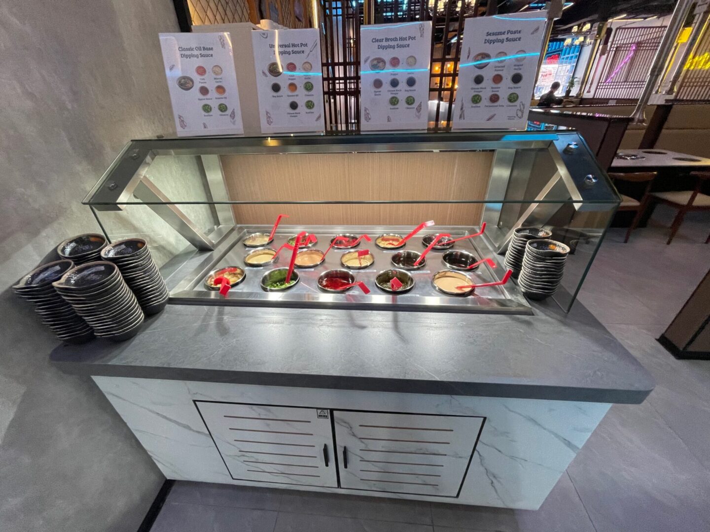 Diners who choose the hot pot have a variety of ingredients to pick from including bases like miso soup, spicy Szechaun broth and golden fish maw and chicken broth, and proteins such as crab, pork belly, spam and beef tripe. They can enhance their hot pot experience by choosing from fresh vegetables, noodles and sauces served buffet style.