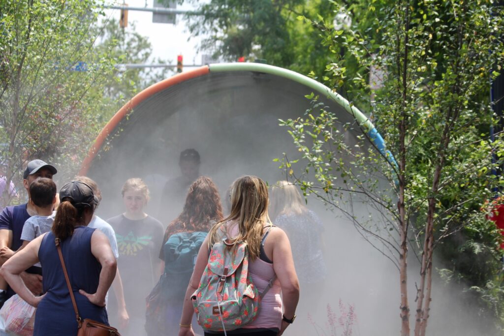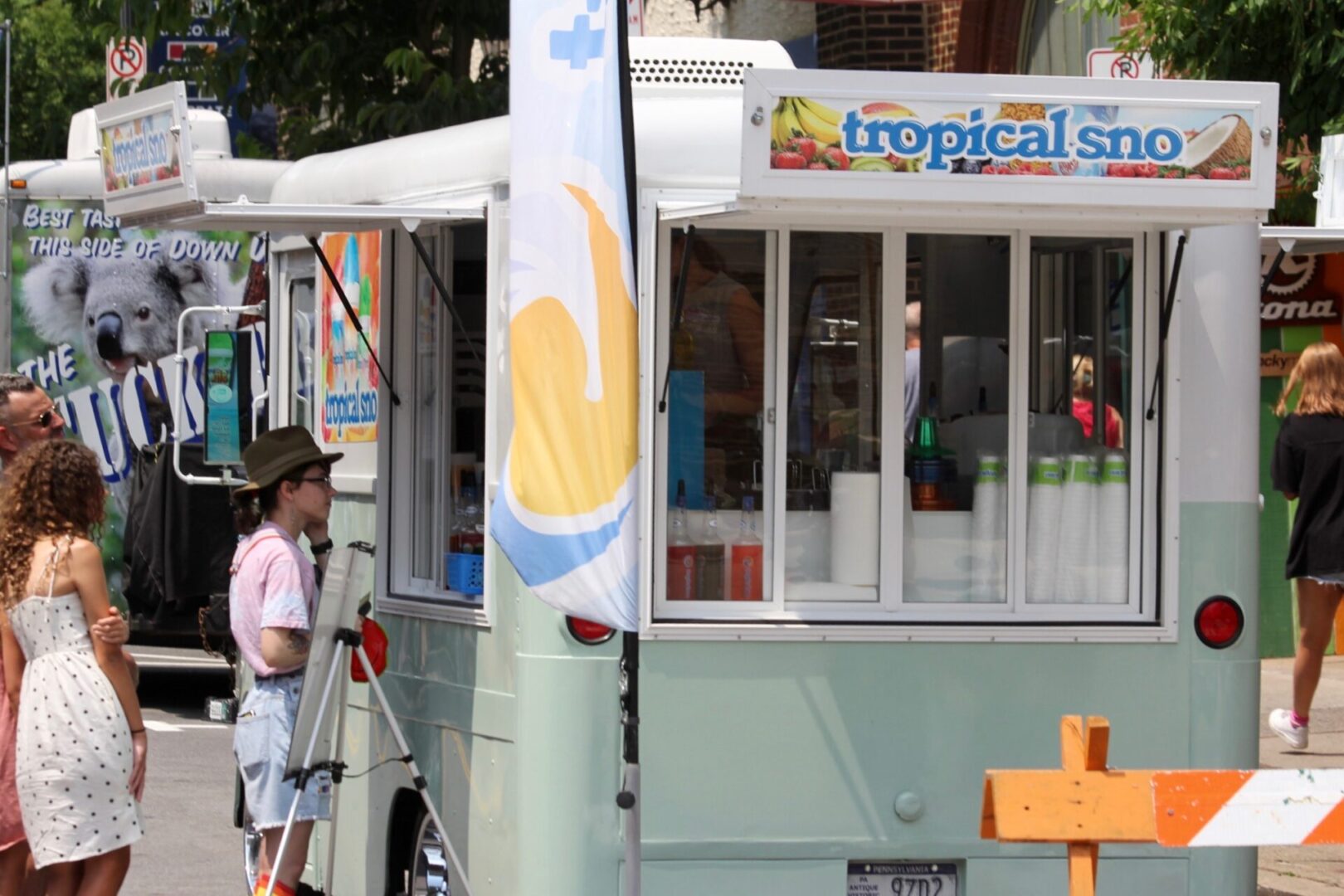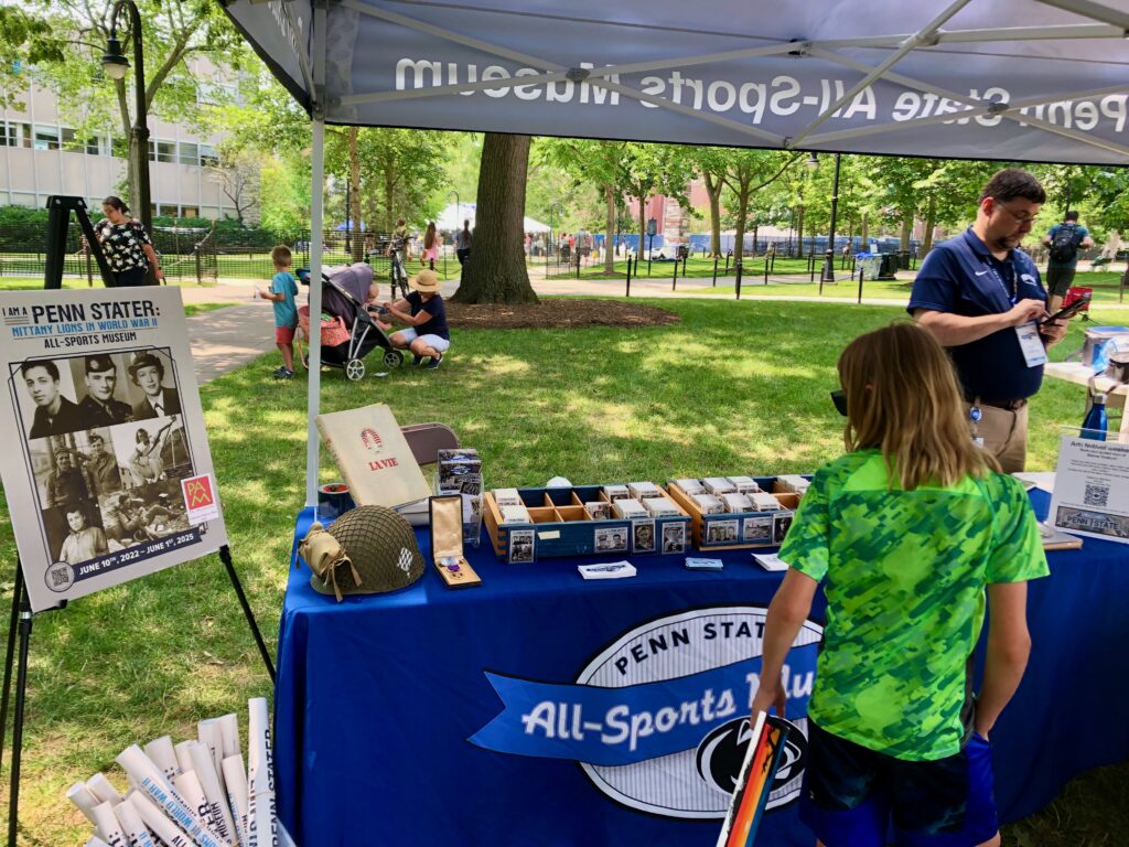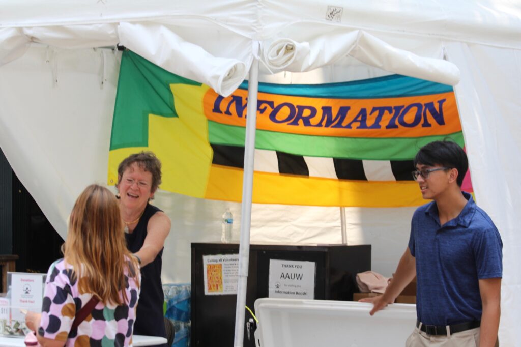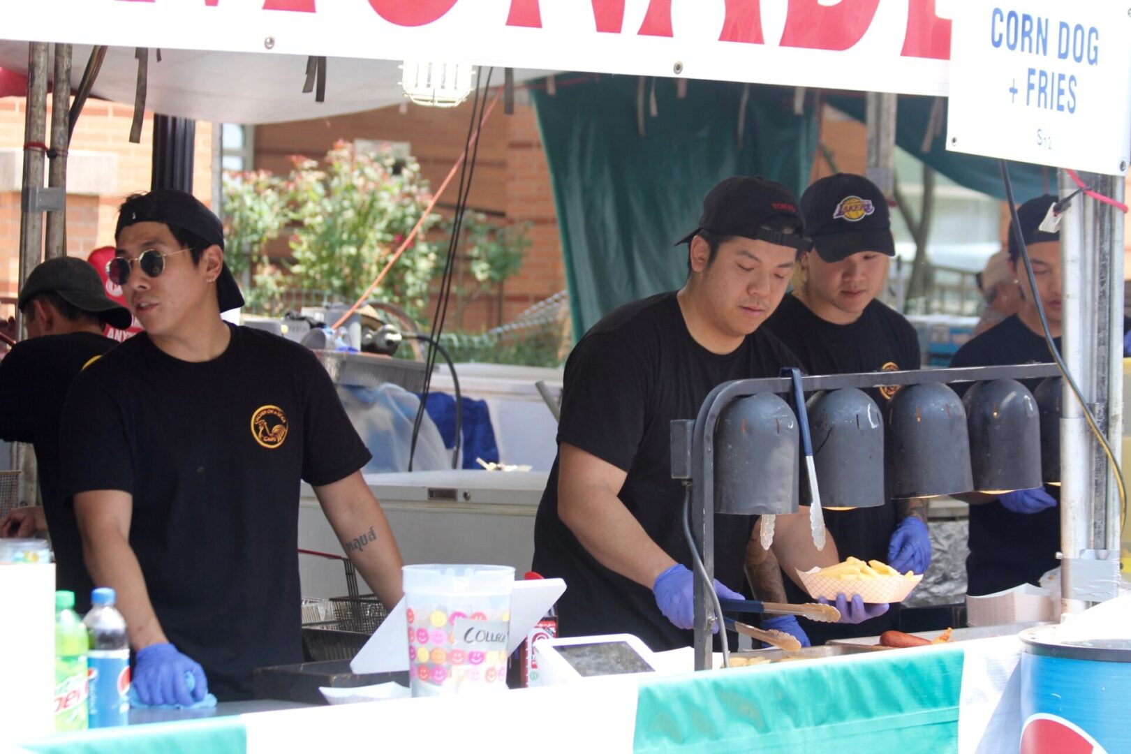 The misting tunnel and dumping buckets on South Allen Street offer a way to stay cool on hot days at the festival. Photos by Geoff Rushton | StateCollege.comSales and information booths can be found near the intersection of South Allen Street and College Avenue. Photos by Geoff Rushton | StateCollege.comStaff at the Chan’s Golden Gate stand serve up French fries (left). Festival-goers wait in line for shaved ice (right). Photos by Geoff Rushton | StateCollege.comCrowds make their way through the Children and Youth Sidewalk Sale on South Allen Street. Photo by Geoff Rushton | StateCollege.comFrom left, Rhenleigh Weikel, Miri McLeod and Claire and Ellie Roy were among the first-time participants in the Children and Youth Sidewalk Sale. Photos by Geoff Rushton | StateCollege.comA festival-record 280 young artists and crafters showcased their work in the Children and Youth Sidewalk Sale. Photos by Geoff Rushton | StateCollege.comMusic with Papa brought an entertaining and educational performance to the Allen Street stage (left). Centre County Recycling and Refuse Authority and Jabebo Studio offered activities to learn about recycling. Photos by Geoff Rushton | StateCollege.comAlpha Fire Company gave youngsters a chance to explore a ladder truck, while State College police officers Craig Bernier and Kelly Aston made buttons for kids. Photos by Geoff Rushton | StateCollege.comPenn State hosted scientific and creative activities on Old Main Lawn during Arts Festival’s Children and Youth Day. Photos by Geoff Rushton | StateCollege.com