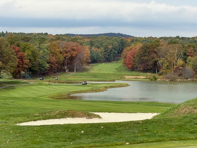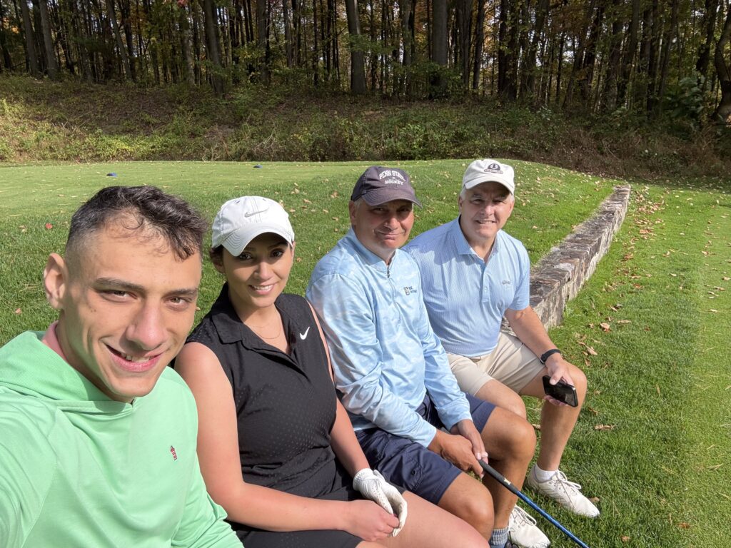On Sunday morning, I joined my two oldest children and one of my best friends from hockey, Clark Dexter, a former Penn State teammate of both mine and Tim’s, and we went golfing at Toftrees where Tim was a member. As our good friend Bob Beaury said during the service, “Tim’s favorite spot in all of Centre County was sitting on the wall on the eighth tee box looking down the fairway.” It’s especially beautiful at this time of the year when the fall foliage is at its peak. So, to honor Tim’s memory, we snapped a picture of that exact view. After the round, we stopped for lunch at The Field, where we ran into a number of members who expressed sadness at the loss of their golfing friend.