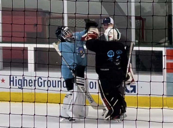 Overspeed Hockey goalie coach Evi Johnson said, “Braxton helped me out all week encouraging Harper, which culminated in that heartwarming moment during the game. He really seemed to understand the value of being a good teammate and helping others get better right alongside his own improvements. It was great to see!”