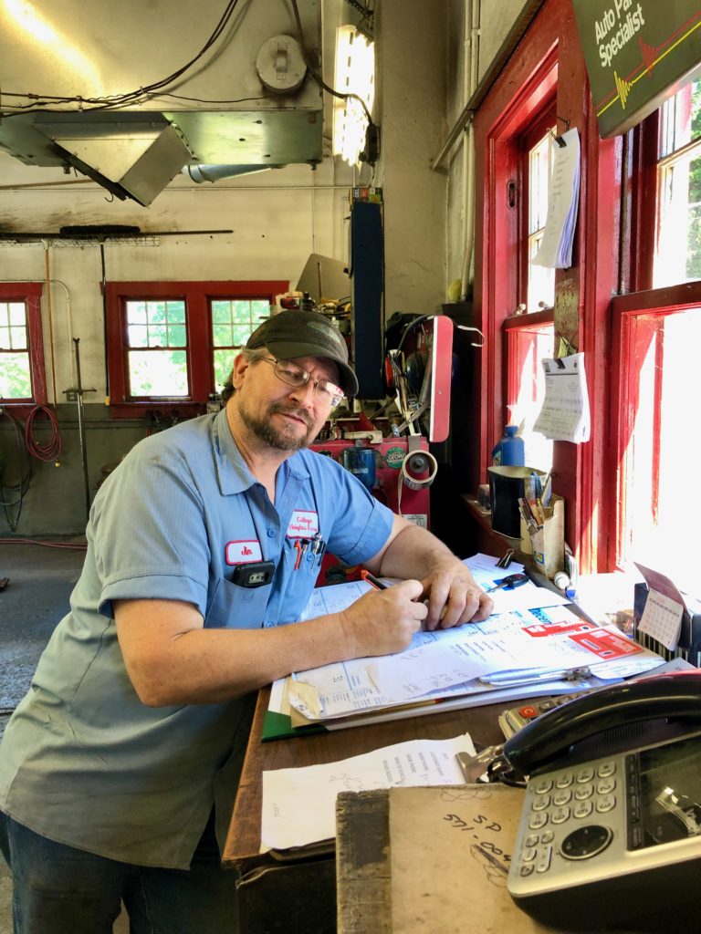I hung around for an hour last week and noticed that every customer knew the names of the three guys working at the station. And Green and mechanics Jim Hartswick and Jeff Houtz knew their customers’ names as well. One old-timer told me he’s been filling up at the station since the 1950s.