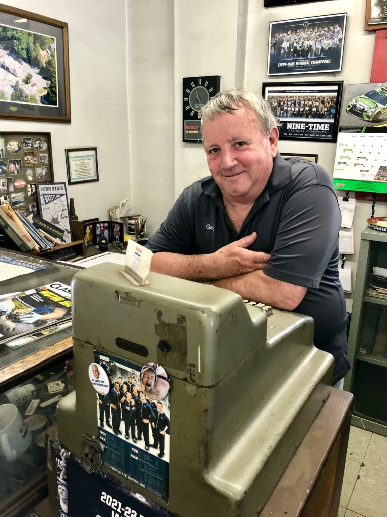 College Heights Exxon is a throwback in another way. Green, Hartswick and Houtz are from old Centre County families. Hartswick’s great grandfather owned a farm in what is now East College Heights. (That’s why there’s a Hartswick Street just a couple of blocks away.) Green’s family goes back to the Civil War locally. Houtzes have been around almost as long.