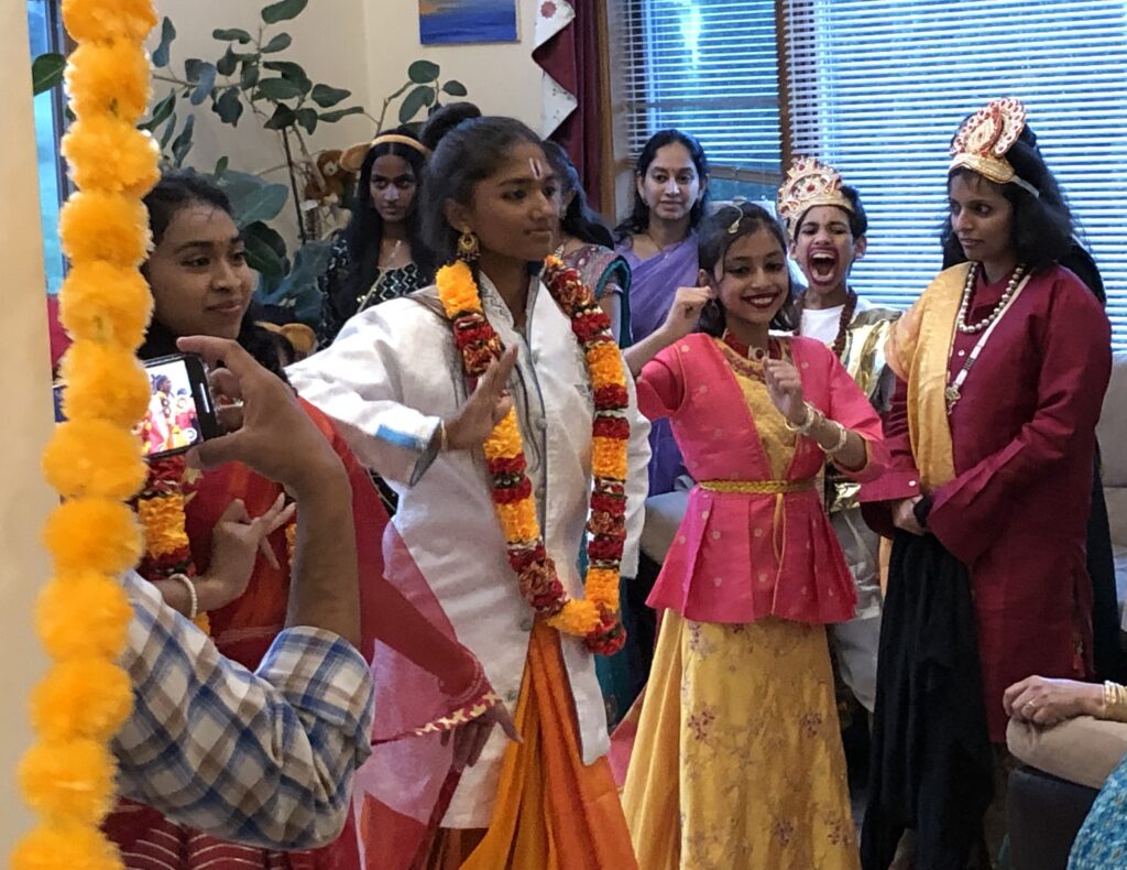 The only story told at the Golden Jubilee was the history of Story Hour itself. Then, instead of an oral telling from the Ramayana, the three storytellers turned it over to 29 dancers, ranging in age from toddlers to teens. Under the direction of Ramkumar Dhandapani, with choreography by Lakshmi Ramkumar and music curated by Tejashwini Ramkumar, the costumed dancers performed the story of Rama’s rescue of his wife Seetha from kidnapping, and his coronation as King of Ayodhya.