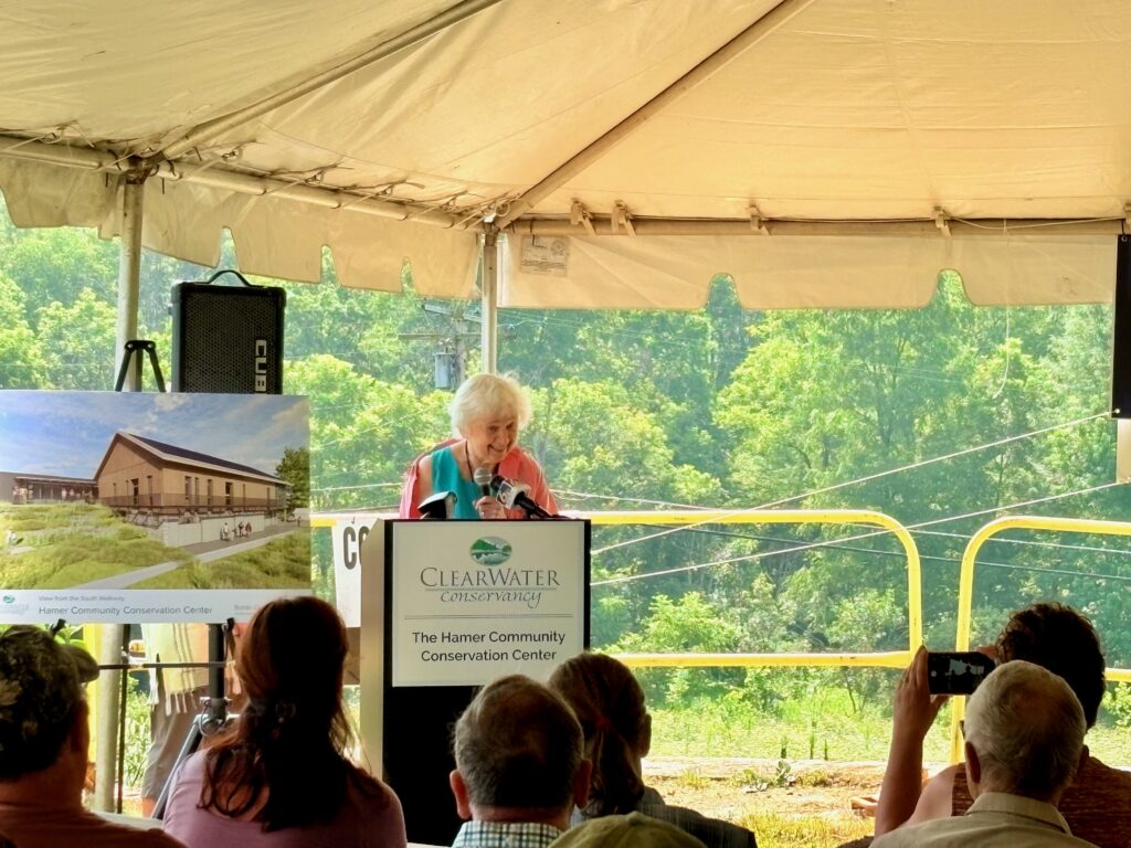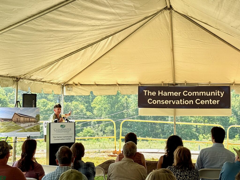 “We are as excited as all of you are to have you share the excitement about our new Hamer Conservation Center,” Donnan Stoicovy, president of ClearWater’s Board of Directors, said as she welcomed attendees. “We know that it’s been a long time coming…. We’re so pleased to be able to share the construction of our new home that is about to become a reality right here across from Spring Creek, right in central Pennsylvania.”