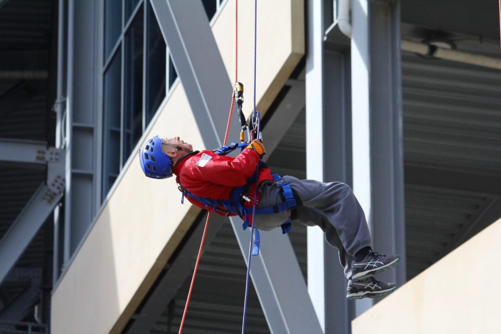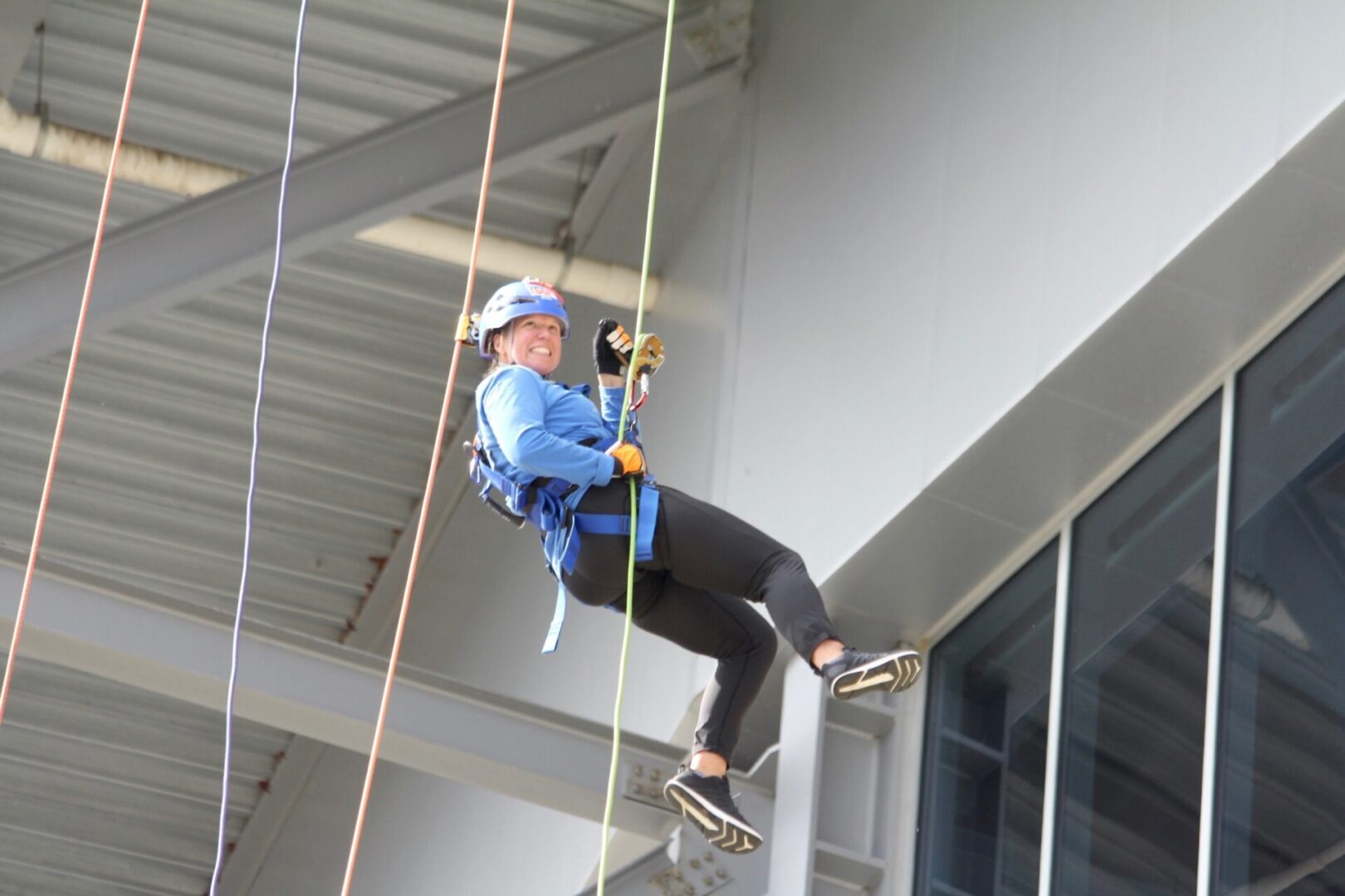 “Layers of approval [are involved], as you can imagine,” said Ja Nae Wian, CCUW campaign and relationship manager. “Using a facility this iconic requires a lot of pre-planning and approvals and dealing with all of the risk management, but they’re amazing partners. So I think that was probably one of the biggest steps is getting that OK to do it, and then letting the community know that it’s happening because it’s a noisy time of year, football season… and then encouraging folks to meet their fundraising goal and come out here and have the courage to actually put that foot over the edge and go over the edge.”
