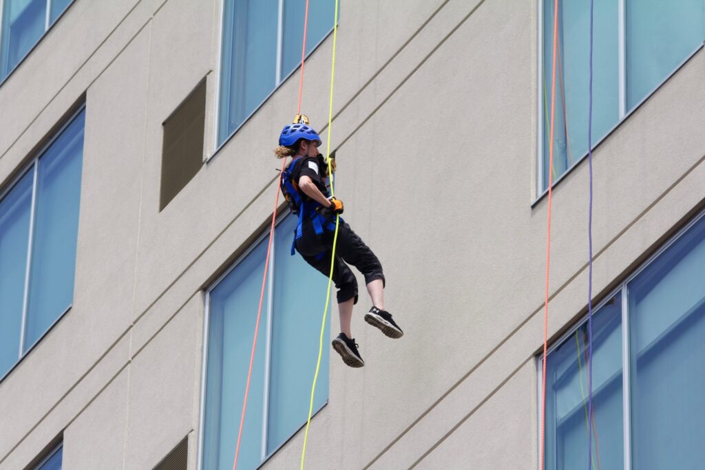 In addition to the professionals from Over the Edge, the event had more than two dozen volunteers assisting with various aspects of the event, including those who received training to help with the ropes on the roof and at street level.