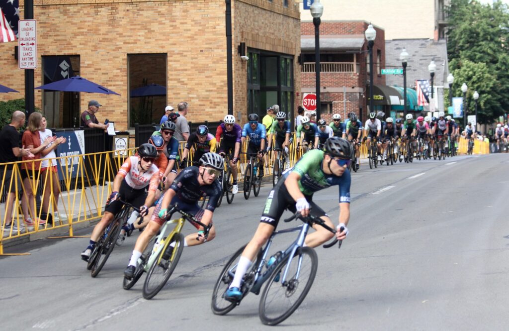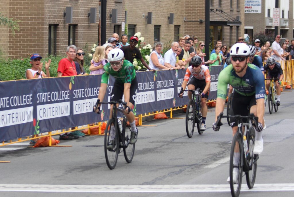 “I love to say that the State College Criterium is where sports is going to meet entertainment,” Engelbarts said. “It’s right at that intersection, basically, a good visual for people. It’s kind of like a NASCAR race, but for bicycles. We set up a closed, short course loop downtown that is going to be a little less than a mile, about 0.7 miles. And these cyclists come in, they compete mainly in skill level and by gender, and they will race in a loop for an established amount of time…They’re drifting, they’re cornering, they’re being strategic of when they make their moves.”