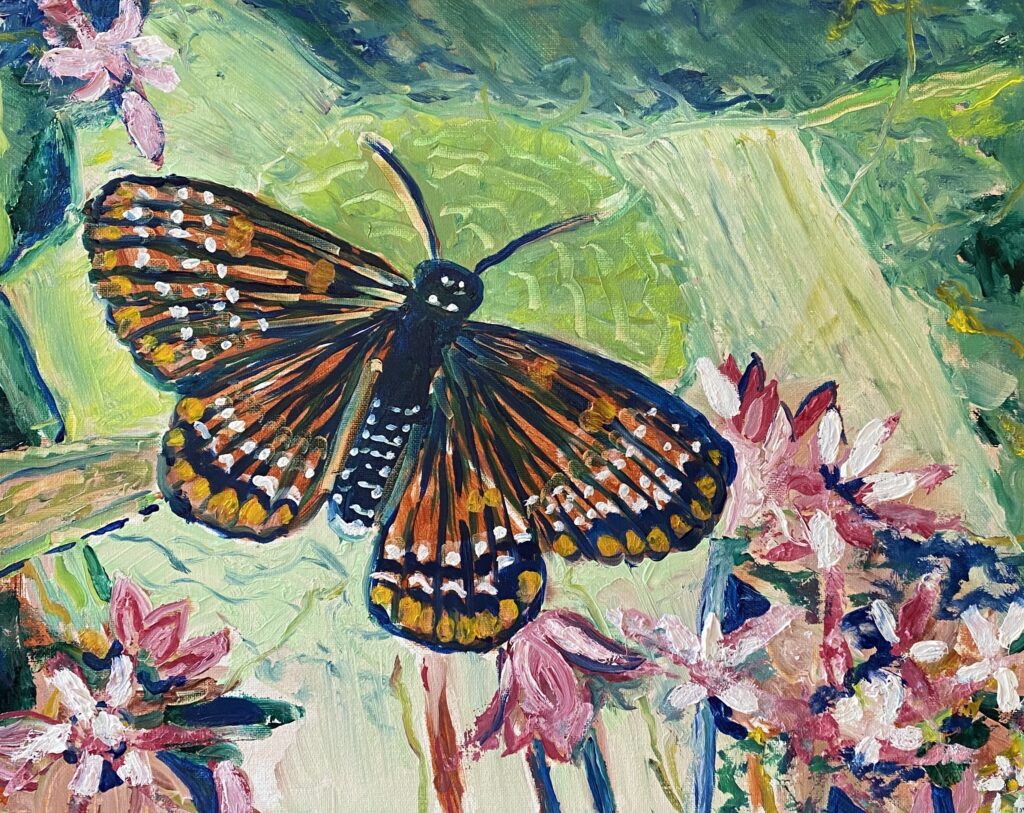 They chose two pieces by artist Stephanie Koller, “Caterpillars at Black Moshannon” and “Baltimore Checkerspot Butterfly.”