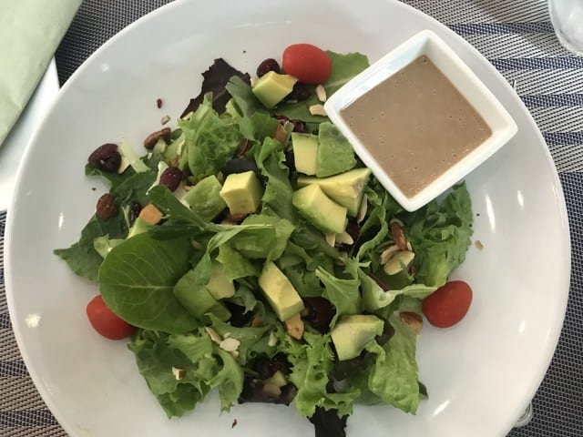 I chose the avocado salad, which was reasonably priced, decently sized, and delicious, while my dining companion went with the classic five-spices chicken.