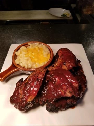 The barbecue chicken and homemade mac and cheese special at Mike’s Wood Grill has become a popular choice. Photo via Mike’s Wood Grill and Bar