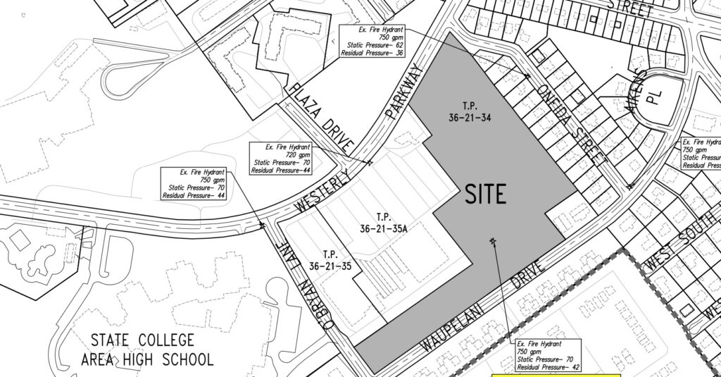 Landmark Properties plans to construct The Retreat at Westerly Parkway, a 142-unit development on the east side of the plaza, where two now-vacant commercial buildings currently stand, and on an empty lot along Waupelani Drive behind the plaza. Landmark has developed or manages multiple other student housing projects in the State College area, and is planning another 12-story building downtown.