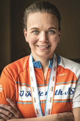 Kramer continues to defy that doctor’s nearly decade-old prediction of soon needing to use a wheelchair. Along with her team, The Myelinators, she is a proud regular participant in Walk MS and Bike MS, the two biggest fundraisers for the National MS Society. The team name refers to “myelin,” the protective nerve covering that an MS patient loses when their immune system attacks the central nervous system.