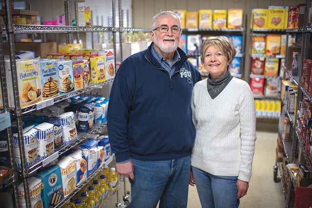 Hank and Karen Sterling have been volunteer grocery assistants at the State College Food Bank for four and three years, respectively.