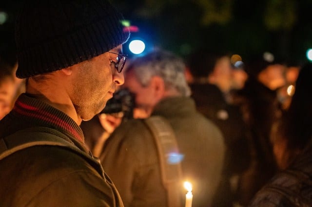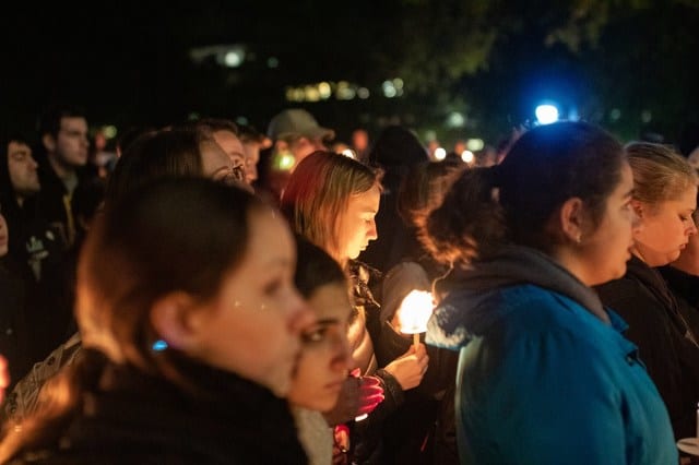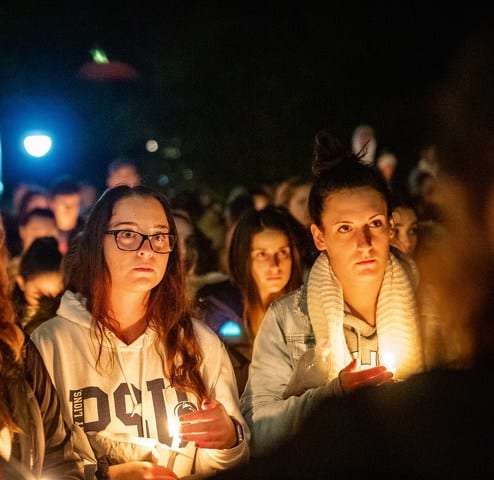 Members of the Penn State and State College community held an emotional candlelight vigil Monday night at Old Main to honor the 11 lives lost in the shooting on Saturday at the Tree of Life Synagogue in Pittsburgh.
