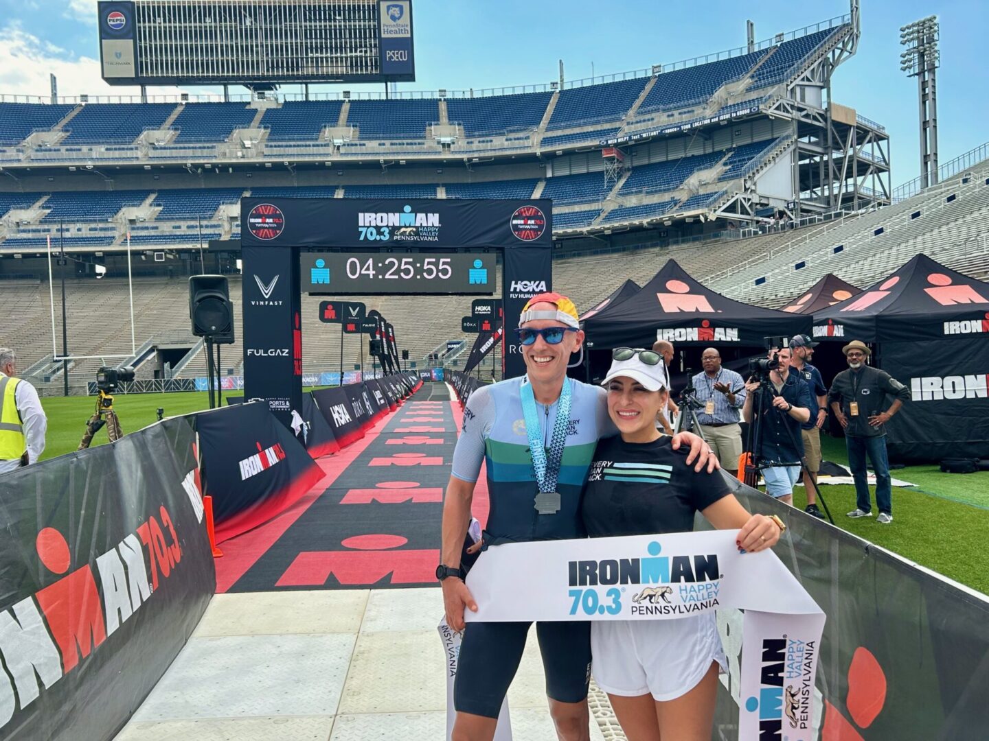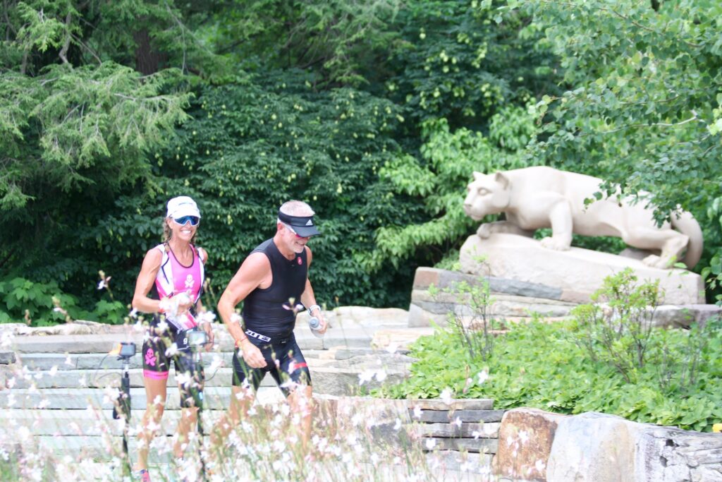 Marking its second year, the 70.3-mile triathlon started with a 1.2 mile swim in Sayers Lake at Bald Eagle State Park and continued with a 56-mile bike ride that went into Clinton County before coming back through the Nittany Valley and over Centre Hall Mountain. After descending into Centre Hall, participants made their way toward State College and the Penn State campus, where a 13.1-mile run concluded the race with the finish line at the 50-yard line of Beaver Stadium.