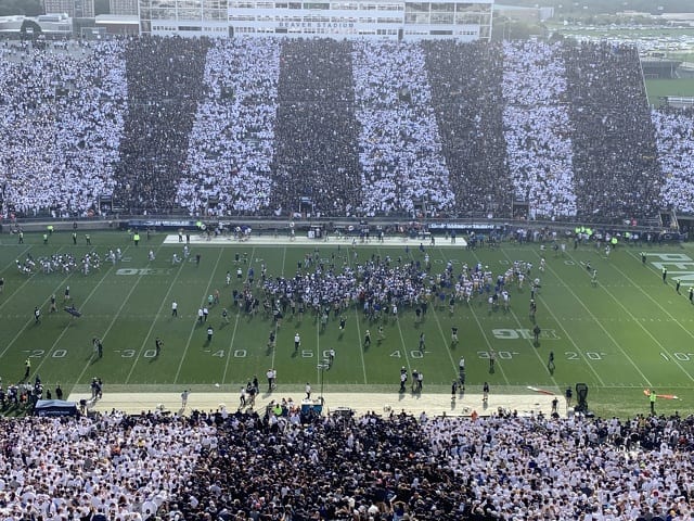 At a tailgate after the game,I ran into a number of former PSU football players, including Shane Conlan, who were all just as befuddled by the call as I was. A longtime family friend and Pitt grad texted me after the game, “I’m in deep pain over the attempted field goal with 4th down on the one-yard line and five minutes left!”