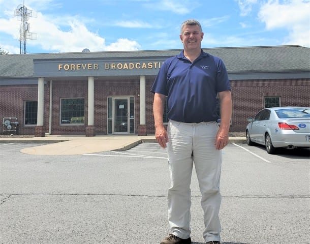 Jeff Byers stands outside the headquarters of Forever Media State College. Photo by Bill Horlacher