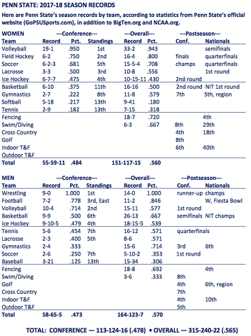 We set out to determine the win-loss record of every Penn State sports team in 2017-18, and gather them in one place.