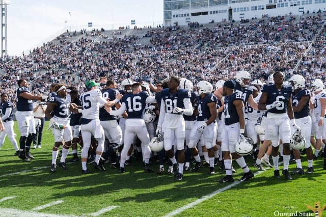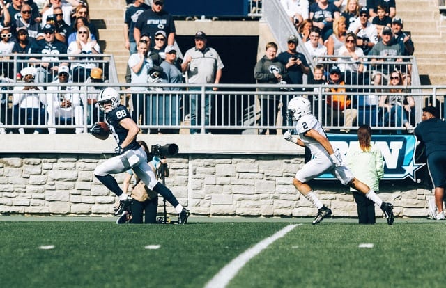 As the clock wound down in the third quarter, fifth-year senior wideout Dan Chisena blew the lid off of the defense for a 59-yard touchdown. James Franklin made a special announcement over the PA system to the entire Beaver Stadium crowd following the score.