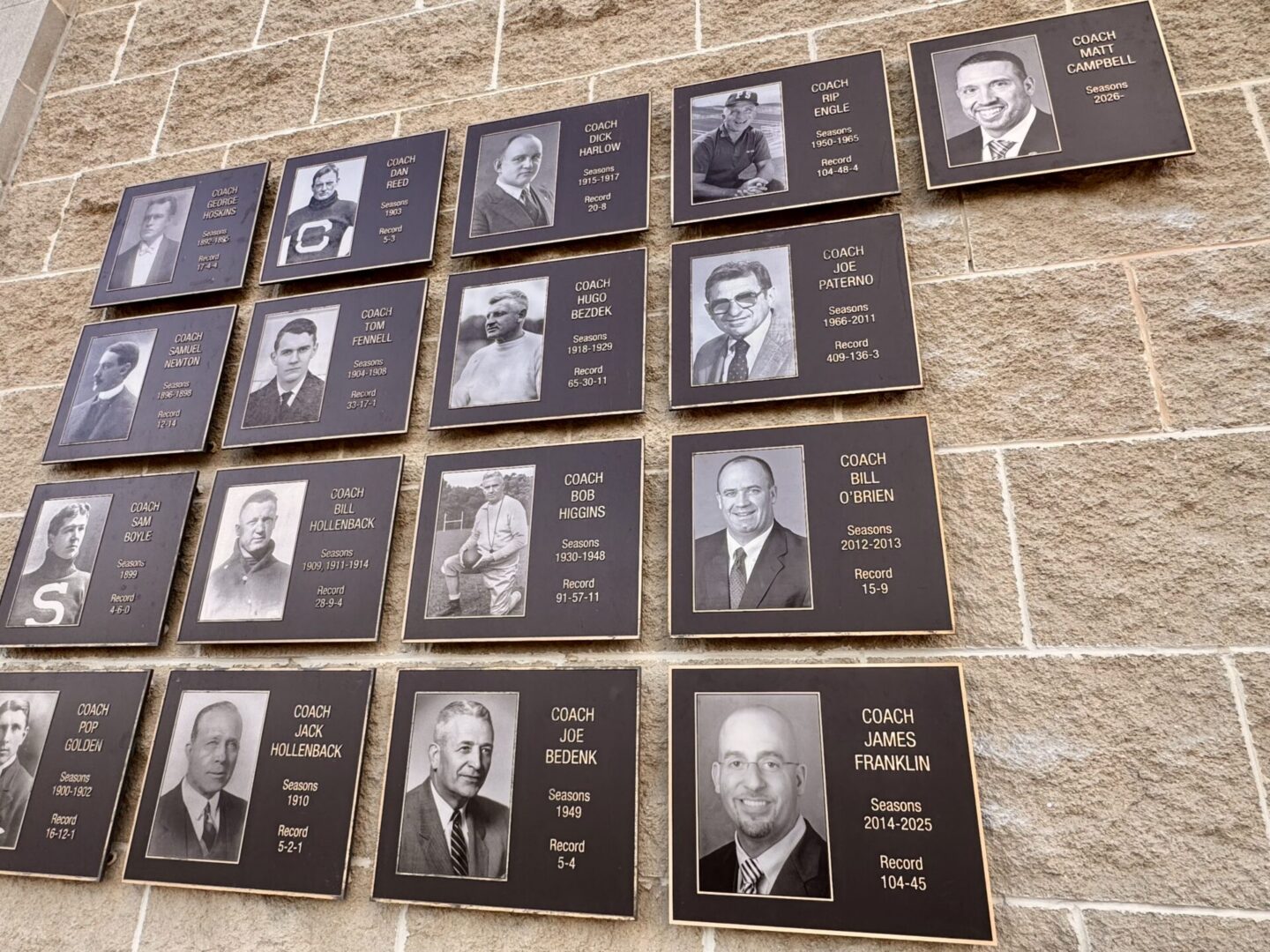 And the start of the Matt Campbell Era has been officially recognized, with the new Nittany Lion head coach — hired on Dec. 5, 2025 — featured on his own plaque, with his name above “Seasons 2026.”