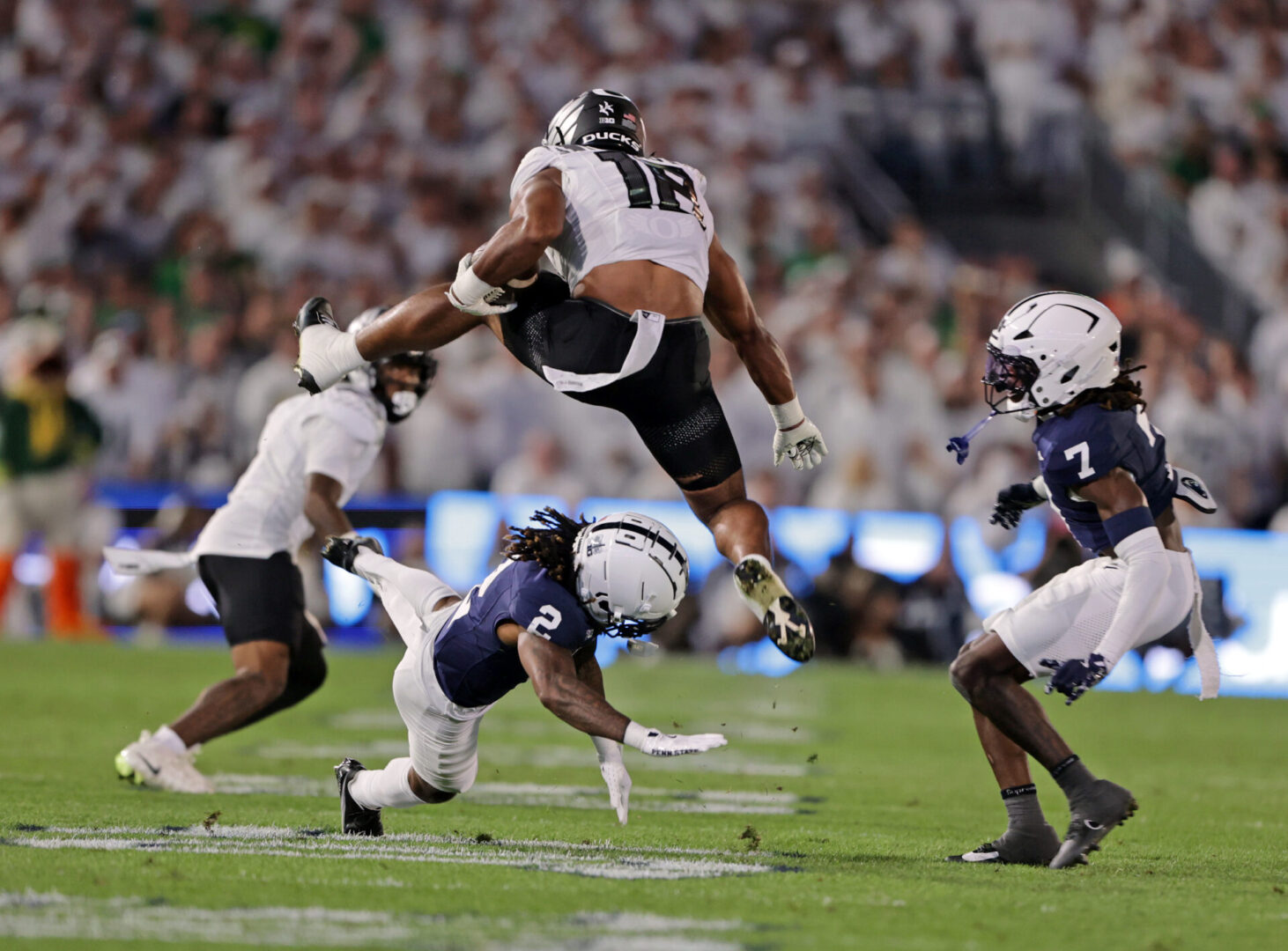 The Ducks outgained the Nittany Lions 424-276, led by quarterback Dante Moore who completed 29 of 39 passes for 248 yards and three touchdowns.