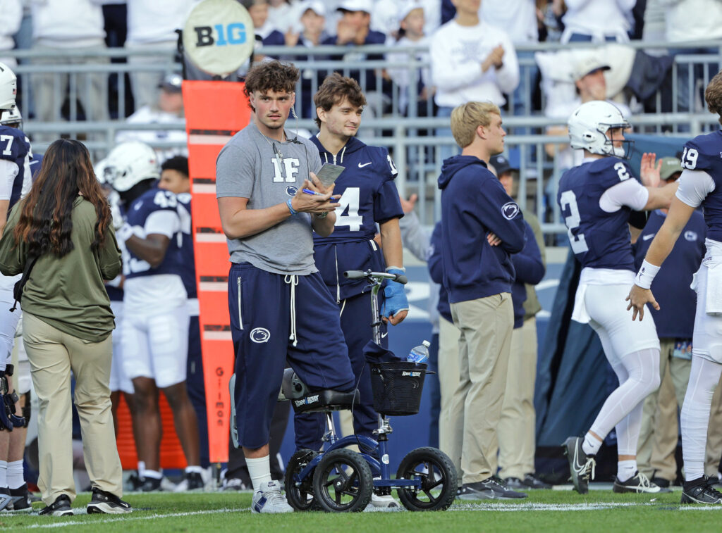 He’s returned the favor, remaining around the program since his injury and traveling with the team to Ohio State and Michigan State. Donning a cast and riding on a scooter, Allar has been on the sidelines to offer support and advice throughout. It’s rare for injured players to be as involved as Allar has been, which he credited to his connection with players and staff members.