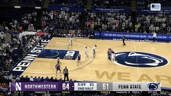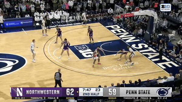 Steals also involve a bit of misdirection. Make an offensive player think one thing is happening and then surprise them with something else. Another play from Penn State’s eventual loss to Northwestern was one of Baldwin’s eight steals on the night. This one brought you by the art of showing up when you’re not supposed to.