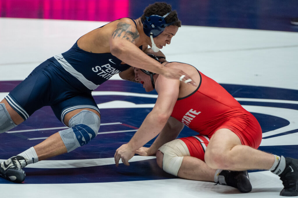 At 184 pounds, No. 5 Bernie Truax took on Ohio State’s Ryder Rogotzke. Truax dictated the pace early with two takedowns in the first and, after a Rogotzke escape to start the second, scored another to open up a 9-3 lead. But after Rogotzke escaped, he gained control of Truax out of scramble and forced the Nittany Lion to his back for a pin at the 3:59 mark and an upset victory.