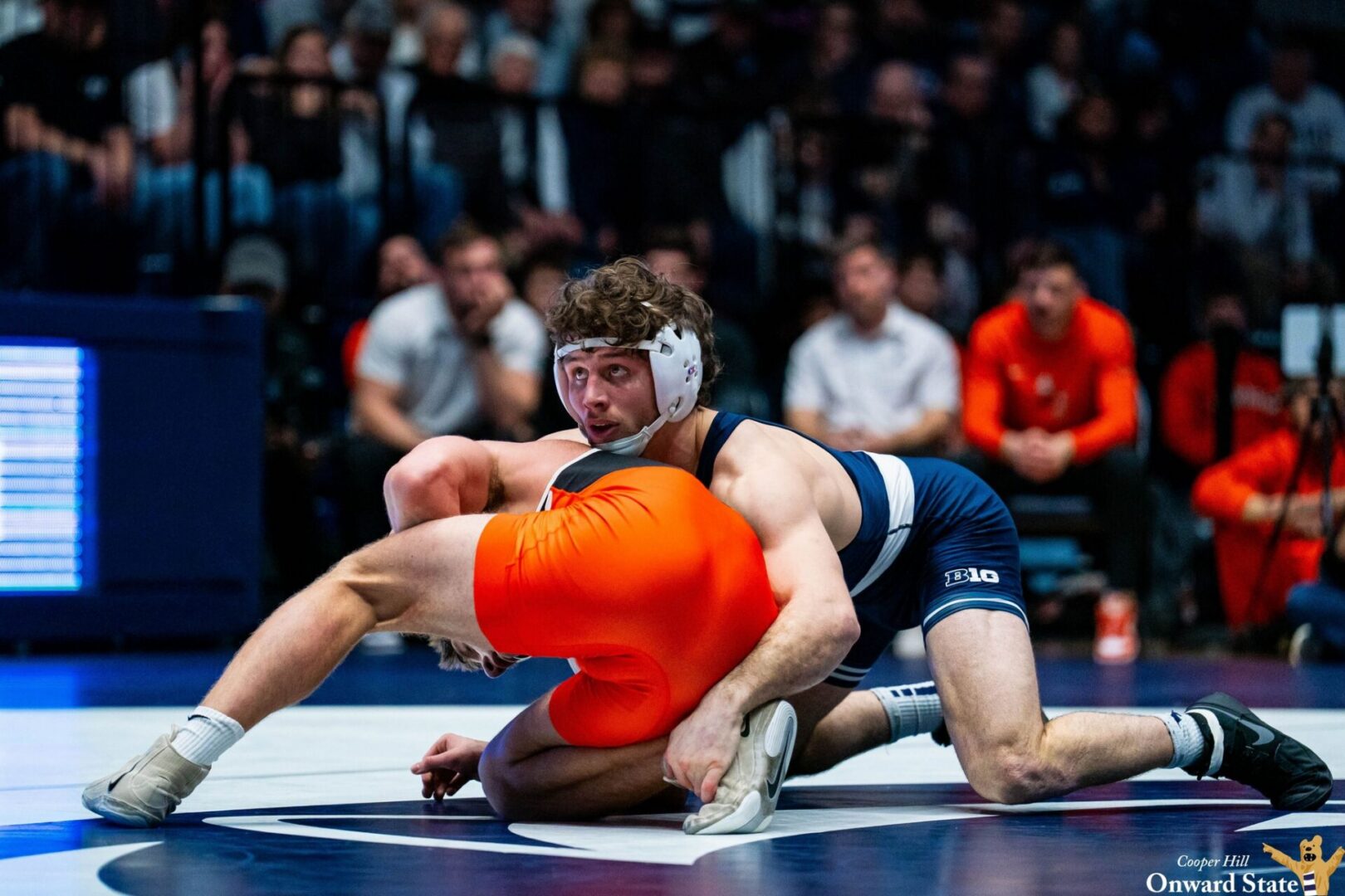 No. 1 Mitchell Mesenbrink set the tone for a thoroughly dominant back half of the meet for the Nittany Lions out of the intermission. Mesenbrink took down No. 19 Ty Whalen twice before running an arm bar and cranking him over for the fall at 3:31, his eighth pin of the season.