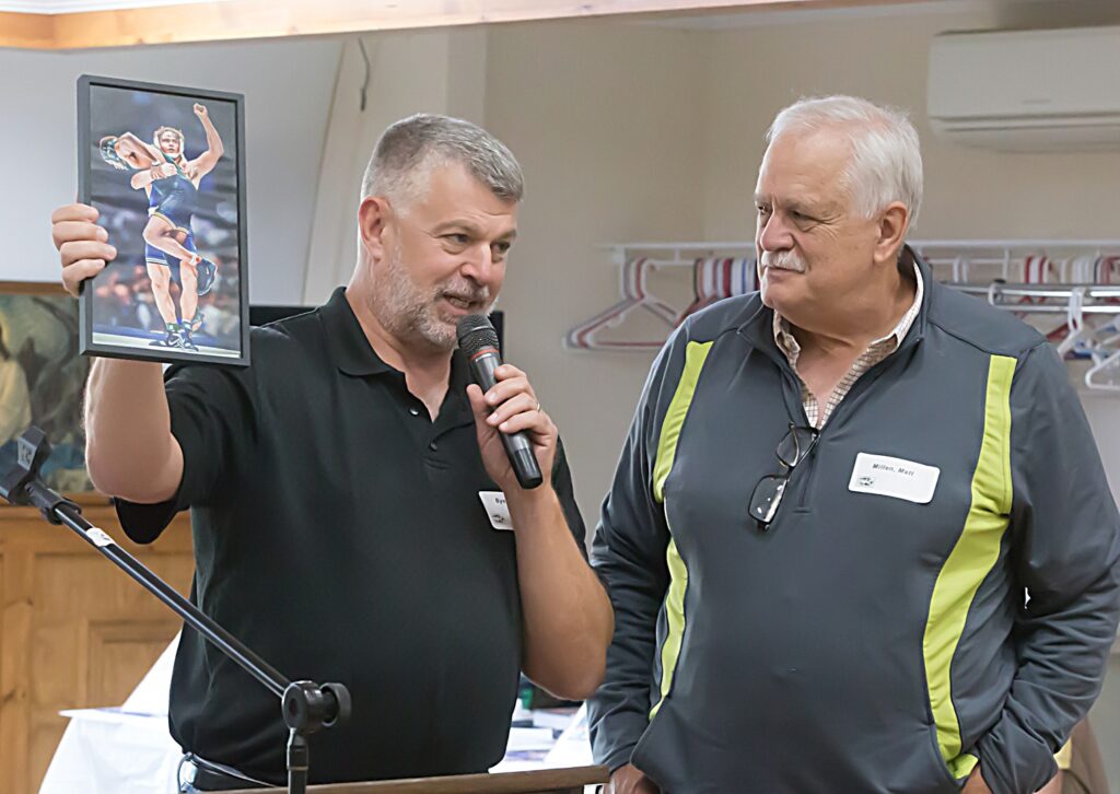 This year’s conversation took place in the newly-opened Happy Valley Live, located just south of Beaver Stadium at 1031 E. College Avenue. Our Reuben sandwiches were great, the Penn State-themed décor was fabulous, but my good mood was already guaranteed by the chance to hear Byers talk about the recent past and the soon-coming future for Coach Cael Sanderson’s wrestlers.