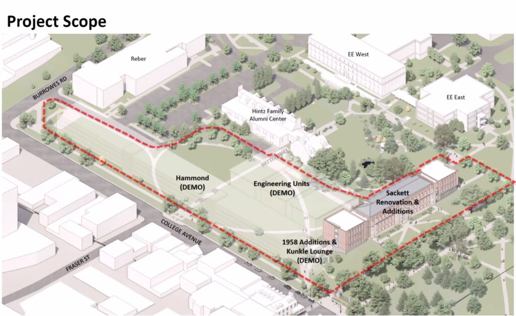 It will also include the demolition of Kunkle Lounge and Engineering Units A,B and C, as well as the lamentable eye-sore Hammond Building along West College Avenue. Hammond will be razed “in a future year,” according to the planning commission agenda, and a 2022 project document indicated its demolition would be the last phase of the project, in 2027.