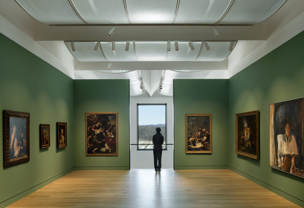 At 73,000 square feet, the new building, designed by Allied Works, nearly doubles the footprint of the museum’s former longtime home on Curtin Road. It includes 20 light-filled galleries, new educational and event spaces, a museum store and café, a sculpture path and outdoor terraces.
