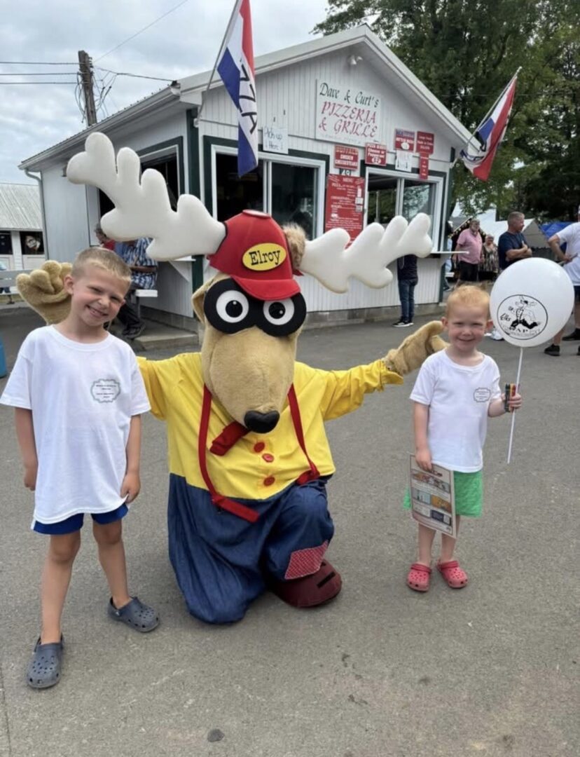 Bellefonte Elks PER Association was successful in bringing back the long -time tradition where PER volunteers staffed and managed our Elks Grange Fair booth selling raffle tickets for Home Service. The Elks promoted the Elks Drug Awareness Program with local youth. With the assistance of Elroy the Elk and youth volunteers, more than 200 Drug Awareness Program balloons, coloring books and crayons were distributed. A big thank you to PER DSVP Doug Linebaugh, PER PDDGER Dick Mulfinger, PER PDDGER Denise Zelznick, PER John Rockey, PER Nina King, and PER Brenda Kephart. Pictured are PERs in training, Easton, Tripp and Elroy the Elk portrayed by member Donald Townsend.