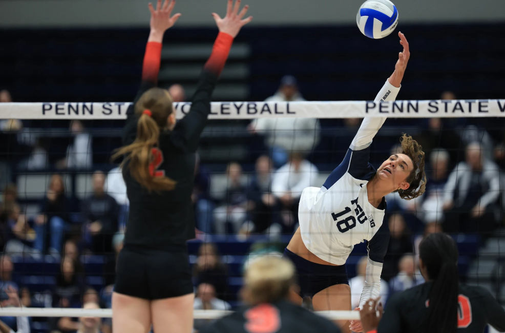 Penn State totaled 11 blocks while holding Ohio State to .225 hitting. Mendelson fueled the effort as she was in on six blocks. The back-row defense was spearheaded by libero Gillian Grimes with 18 digs and Ava Falduto with 14. Those two also accounted for the Nittany Lions’ three aces as Falduto served for two and Grimes chipped in with one.