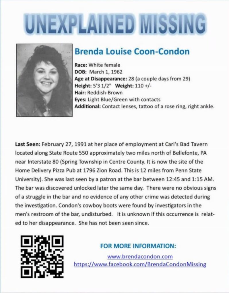 More than three decades later, the disappearance of Brenda Condon remains one of Centre County’s most haunting unsolved mysteries. It’s a case that has lingered in the background of local memory, resurfacing every few years with renewed urgency, but never resolution.
