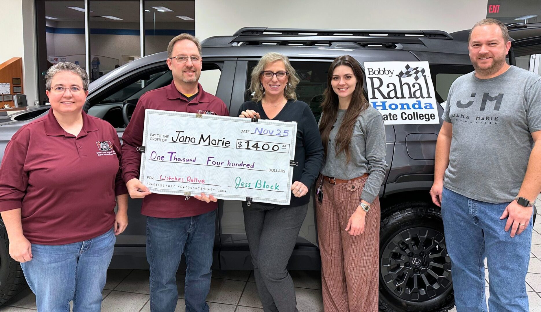 The Central PA Region chapter of the Sports Car Club of America held its annual Charity Road Rally, the Witches Rallye, on Nov. 1, 2025. Teams embarked on a driving scavenger hunt, guided by a packet of cryptic clues, to find various checkpoints along the roads of central Pennsylvania. The fundraiser, sponsored by Bobby Rahal Honda, welcomed 29 teams and raised $1,500 for Jana Marie Foundation, and 230 pounds of food for the Bellefonte Food Bank. Pictured from left are Central PA Region SCCA Regional Executive Jessica Black, Central PA Region SCCA Assistant Regional Executive Chris Paveglio, Bobby Rahal Honda Assistant General Manager Christina Teeter, Jana Marie Foundation Operations Manager Hannah Brewster and Education and Program Manager Peter Horn.