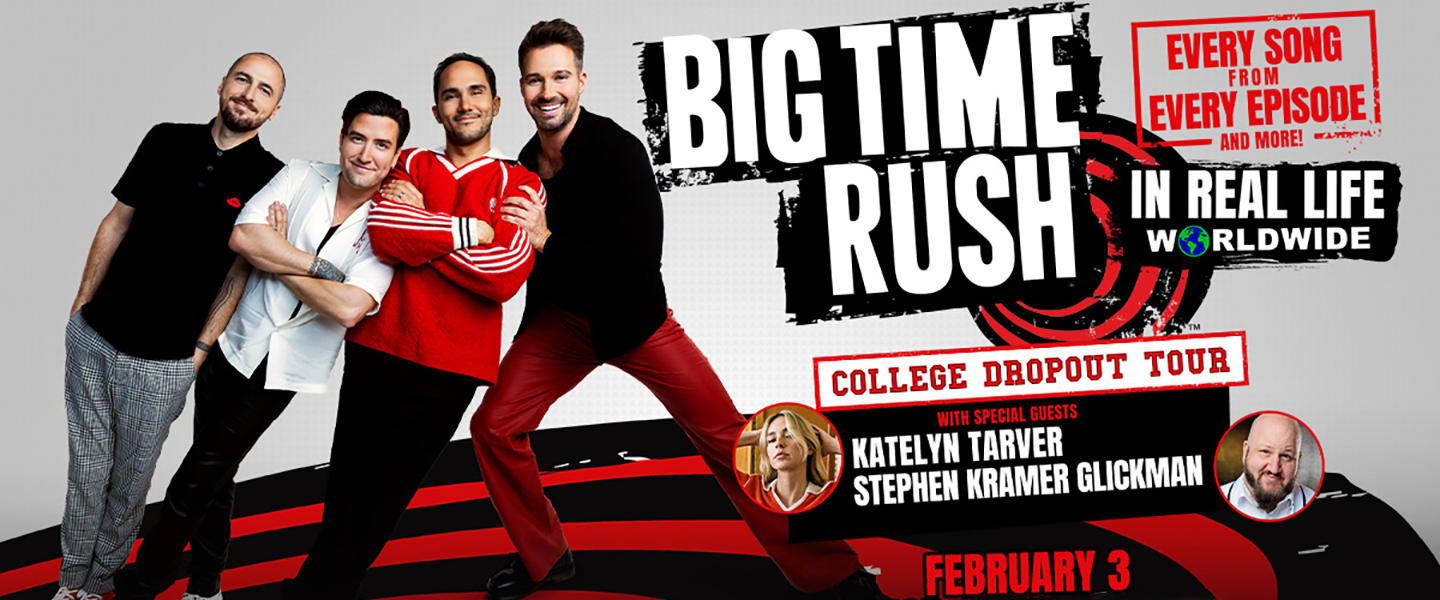 CANCELED —- Big Time Rush is officially heading to college. After fans flocked to their wildly successful 2025 run this summer, the group will be hitting the road (and the books) again with 15 new U.S. shows for 2026 including stops at some of the country’s top college campuses. The band will take their pop major to the next level, earning some “extra credit” with these newly announced shows. Produced by Live Nation, this new leg of the tour includes a stop at Bryce Jordan Center at Penn State, on February 3, 2026 sponsored by the Penn State Student Programming Association (SPA).