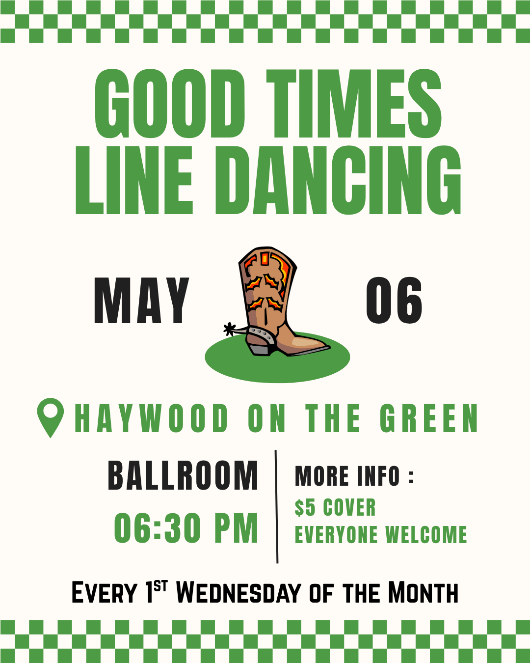 We are excited to invite you to an open requests line dancing event at one of our newest venues – Haywood’s on the Green!⛳