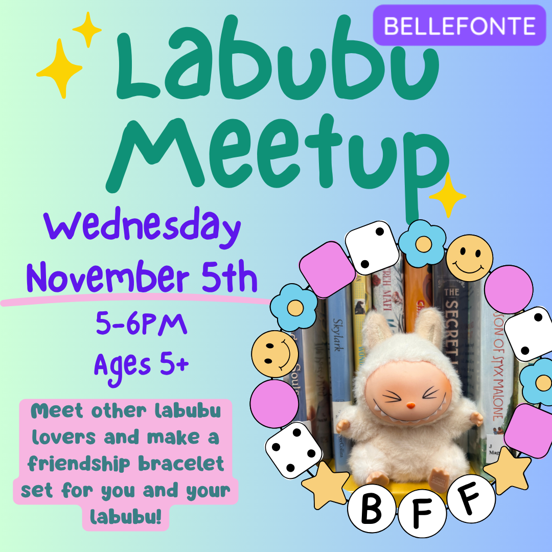 Meet other labubu lovers and make a matching friendship bracelet set for you and your labubu. Lafufu’s, bag charms, and favorite stuffies welcome too! This event is for EVERYONE over 5 years old. The age restriction is due to small pieces that will be present in the crafting room. Please click the link below to register as space and supplies are limited: