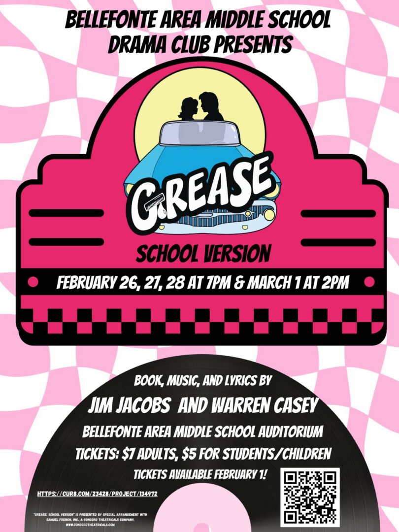 The Bellefonte Area Middle School Drama Club invites the community to come out and support these hardworking students and experience an evening of fun, nostalgia, and school spirit. With so many students involved, the show is truly a celebration of creativity, collaboration, and the power of live theatre in our community.