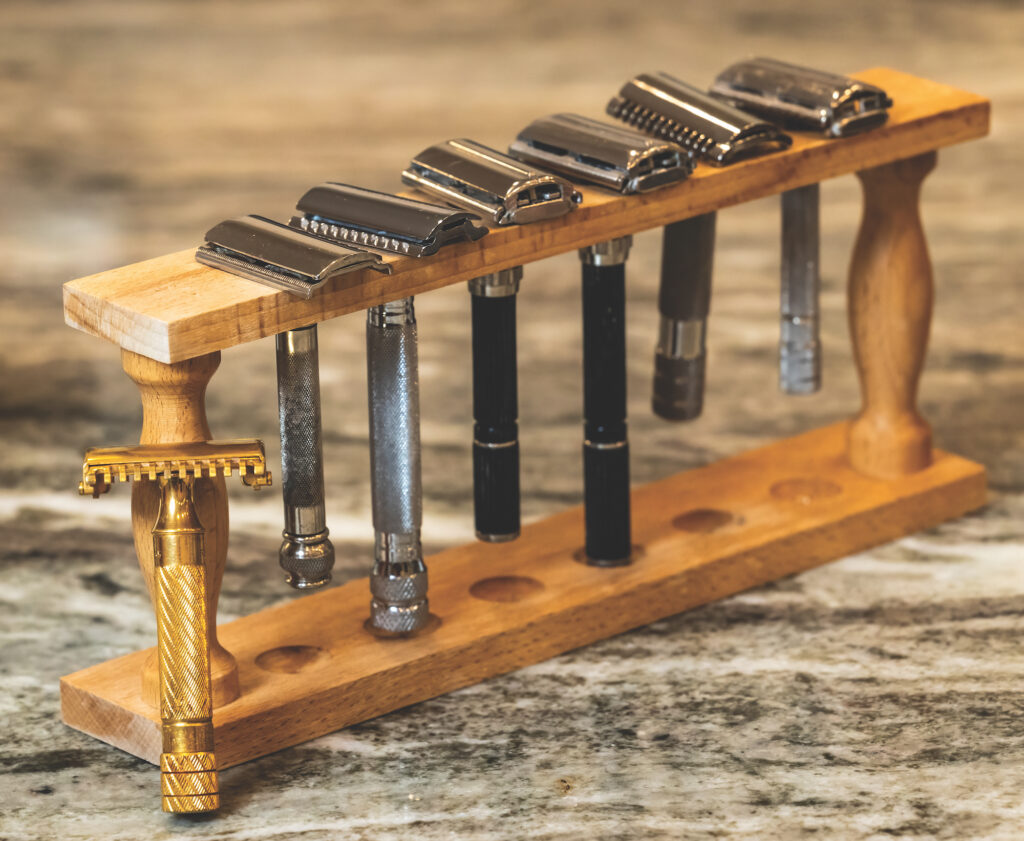 “I was tired of paying $5 per blade,” Harvey explains. “So I joined Dollar Shave Club and this vintage razor popped up with Badger & Blade. Curious, I went on eBay and bought an old razor and it really worked well for me, and my collection just kind of just grew from there.”